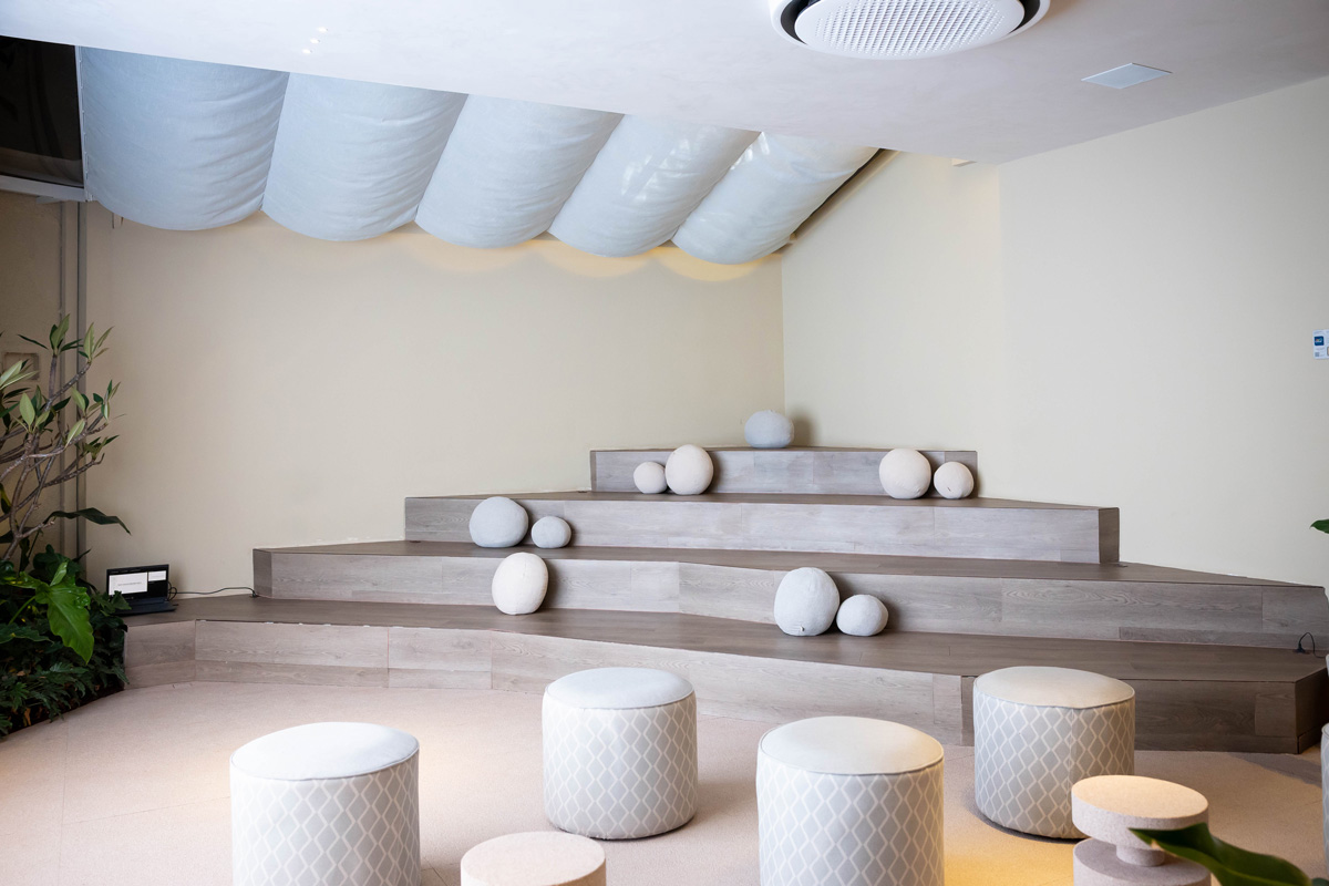No Lounge Gourmet Eventos, os arquitetos Rafael Andrade e Gabriela Andrade convidaram os visitantes a conhecer um espaço acolhedor, ideal para descansar e celebrar momentos especiais com as pessoas que amamos. Para ampliar a capacidade de acolhimento do espaço de evento, foi criada uma arquibancada. Para revesti-la, os arquitetos escolheram o piso vinílico LVT da Linha Working+ no padrão Roma, um amadeirado discreto e sutil que harmonizou perfeitamente com os demais elementos decorativos.