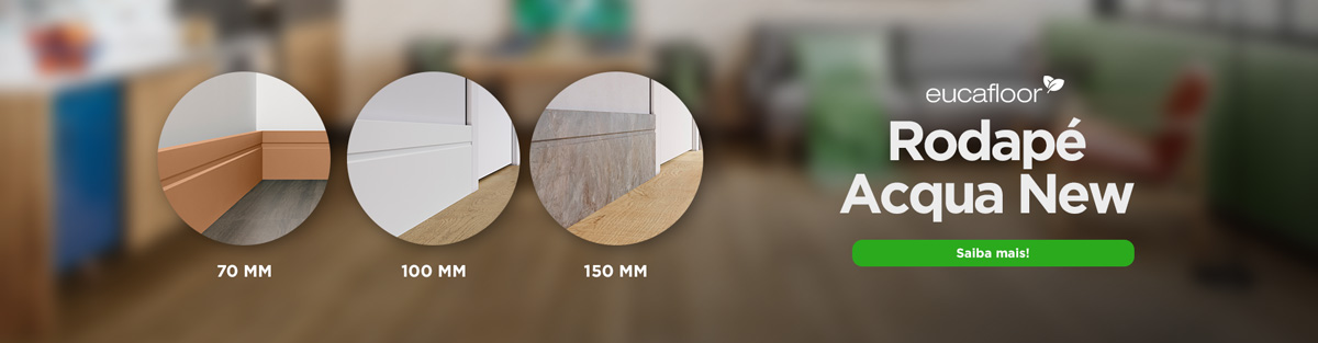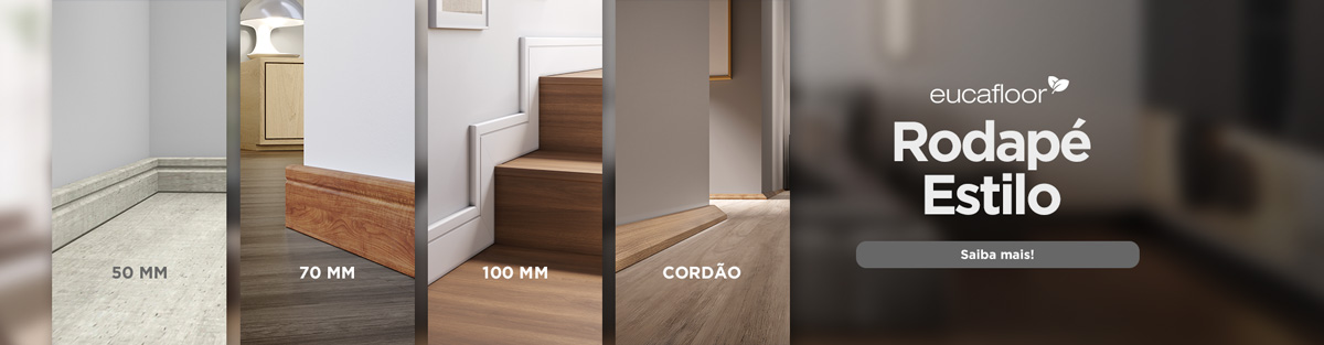 E para deixar seu chão ainda mais bonito, Eucafloor tem duas linhas de rodapés que, além da variedade de padrões, contam com diversos tamanhos e dimensões, que podem ser escolhidos de acordo com a preferência do cliente e a idealização do projeto.